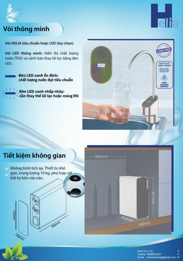 Việc trang bị giải pháp lọc nước ăn uống bằng máy Helia RO là một quyết định đầu tư thông minh cho sức khỏe và an toàn lâu dài của gia đình bạn. Nếu bạn muốn tìm hiểu về máy lọc nước, hãy liên hệ tới Rancoltd để được tư vấn chi tiết.