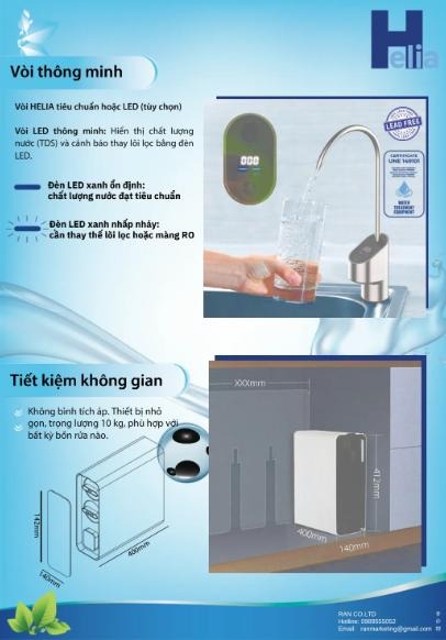 Với thiết kế lõi lọc đa tầng, khả năng bổ sung khoáng nhẹ và dịch vụ chuyên nghiệp từ Rancoltd, máy lọc nước Helia RO là lựa chọn cực kỳ phù hợp cho nhu cầu lọc nước sạch trong gia đình. Nếu bạn muốn đặt mua hoặc cần thêm tư vấn chi tiết, hãy liên hệ với tới chúng tôi. Nước sạch cho gia đình bạn chính là sự đầu tư cho sức khỏe dài lâu.